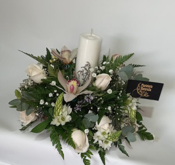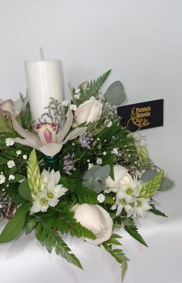 Símbolo de luz acompoñado de flores blancas para acompañar las novenas a nuestro ser fallecido.
